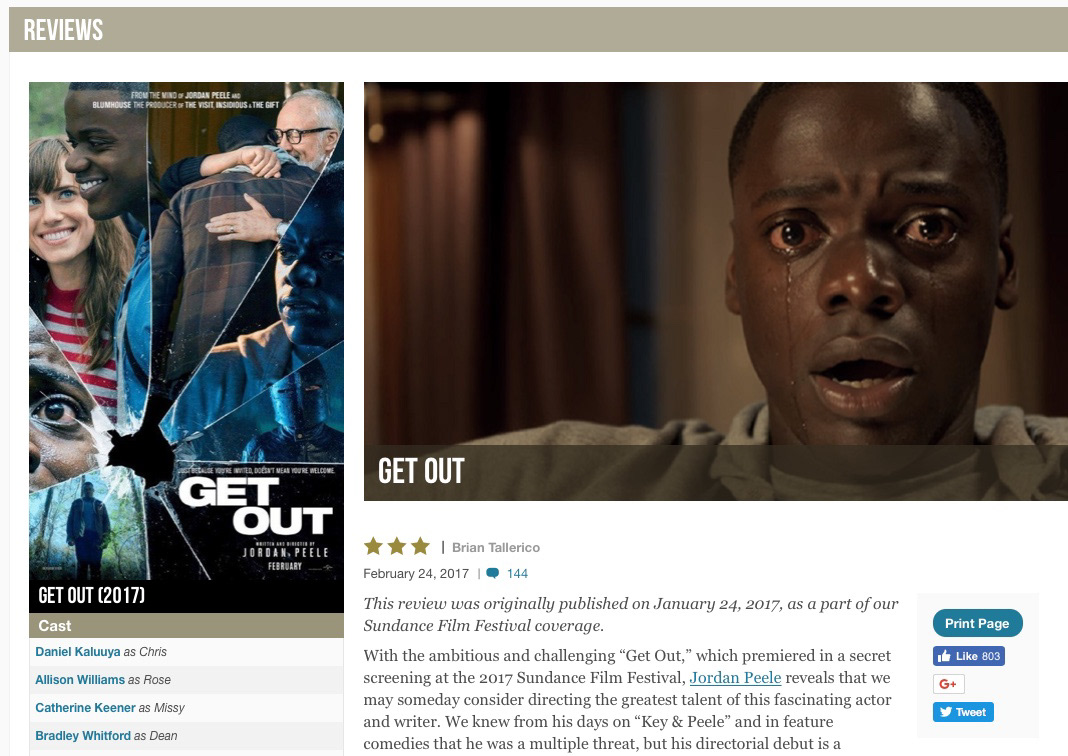 “he proves to be a strong visual artist as a director, finding unique ways to tell a story that goes increasingly off the rails - Peele displays a skill with horror action that I didn’t know he had.”